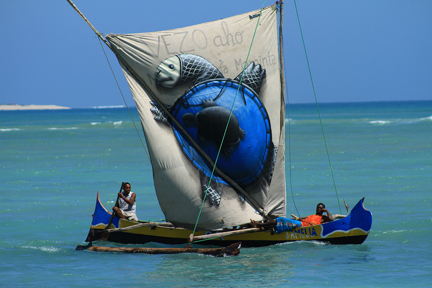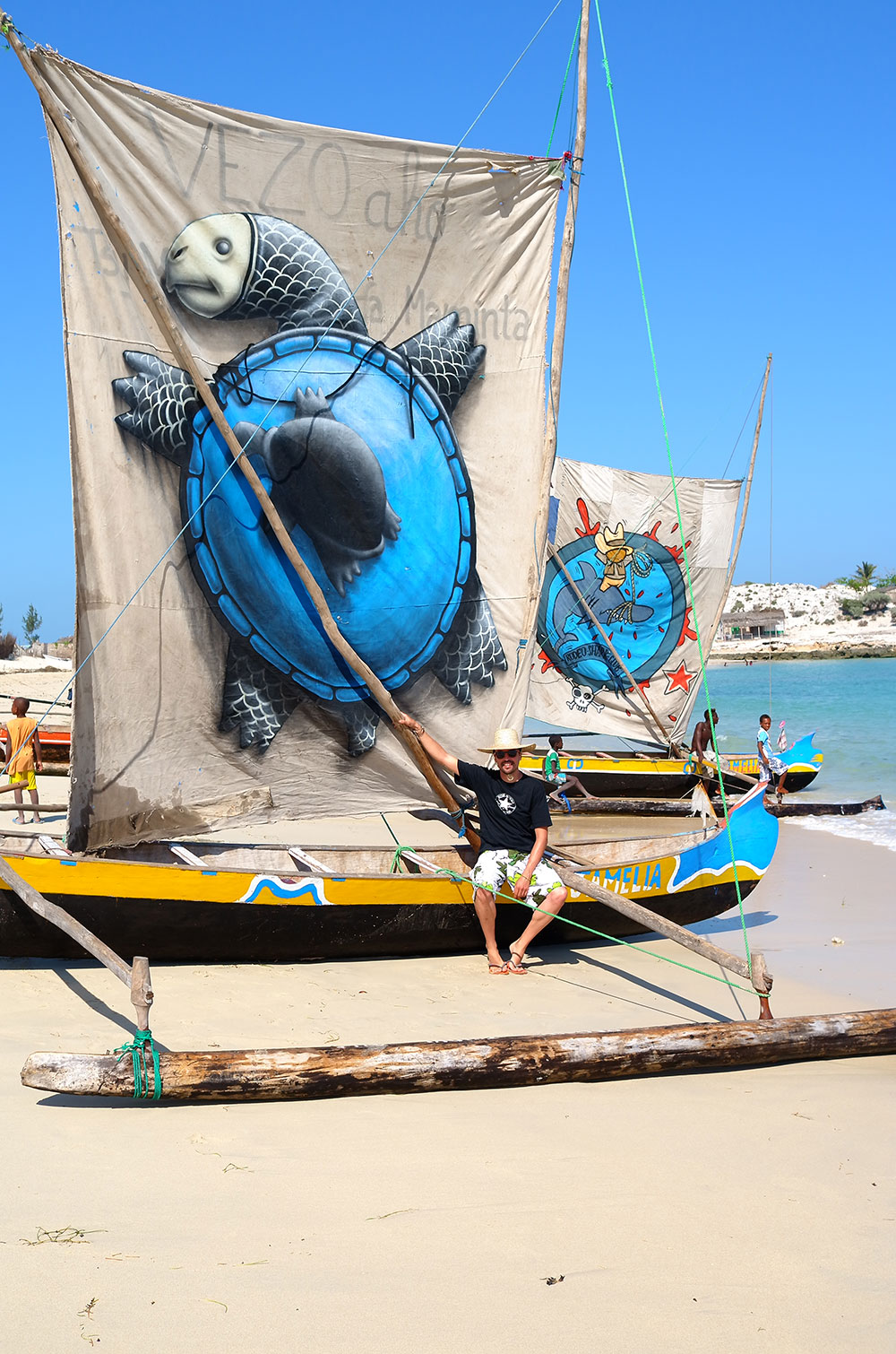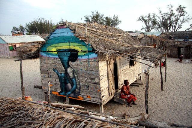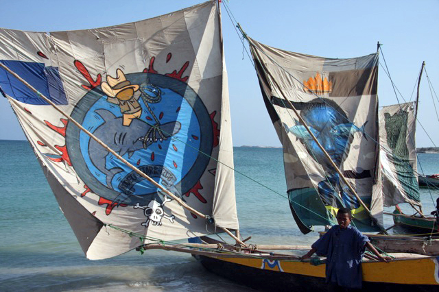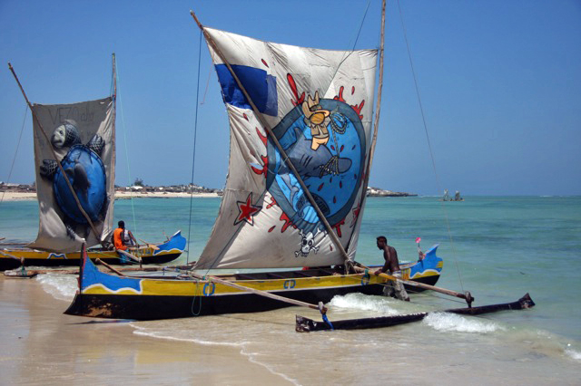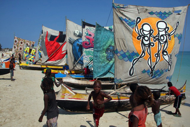 Son admiration pour les Vezo l’a poussé à entreprendre un projet artistique inédit : convoquer quelques-uns des artistes de rue les plus connus mondialement et leur demander de peindre une quarantaine de voiles de pirogue.